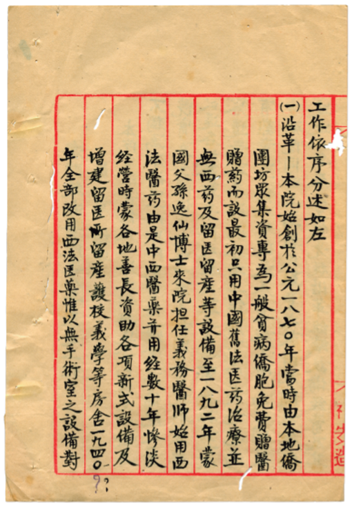 孫中山於1892年在鏡湖醫院義診以及推行西醫情況的紀錄